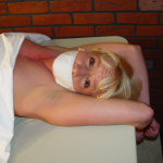 Christina is a well-known model and actress and she has somehow ended up facing peril here in the Nasty Center. We experimented on her with a new polymer cloth that shrinks slowly as it is heated. She was held down to the table with a noose and rope on her ankles. The results of our test are still being analyzed.... |